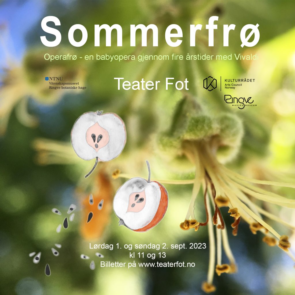 Sommerfrø er tredje del av Operafrø som er et årstidsprosjekt med babyopera skapt for de aller yngste barna, av og med Teater Fot i samarbeid med trær og frø i Ringve botaniske hage gjennom de fire årstidene. Med Vivaldis fantastiske musikk som veiviser starter vi ved det største lønnetreet i hagen, plukker lønnefrø, og hilser eplene velkommen på veien inn til Hallbauer på Ringve Musikkmuseum. Med rislende rituelle rytmer, dufter, farger og store varme operastemmer møter vi de aller minste barna og skaper en felles opplevelse av hvordan sangen former samværet og den lydhøre kontakten mellom alt som lever og blomstrer om sommeren! Velkommen til Ringve for å feire sommerens frukter, blomster og frø sammen med de aller minste!